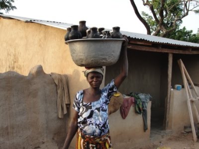 - Dery's wife carrying pito (the local drink, brewed from sorghum) to the market